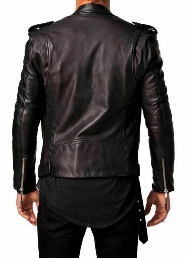 Men’s Black Belted Moto Leather Jacket – Biker Style